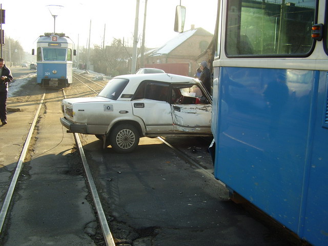 Солнечное морозное утро 9 марта выдалось не совсем удачным для автолюбителя на белой "Ладе" 7-го выпуска. А именно, по словам автовладельца, утреннее солнце ослепило его при повороте с улицы Келецкой на ул. 40 лет Победы, и он не увидел приближающийся трамвай.