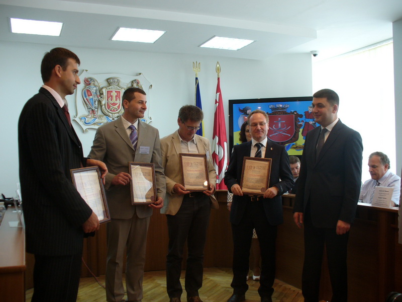 Гості зі Швейцарії, яки займалися проектом "Цюріхськи трамваї для Віниці" отримали почесні грамоти та відзнаки від міського голови Володимира Гройсмана.