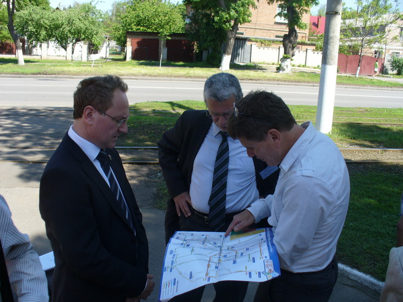 Після офіційної зустрічі в міськвиконкомі усі учасники прес-конференції поїхали до трамвайно-тролейбусного управління, де журналісти мали змогу поспілкуватися з представниками делегації зі Швейцарії та керівництвом КП "ВТТУ". Для гостей був проведений невеличкий "парад трамваїв", який був представлений різними поколіннями вагонів, які в свій час працювали, чи досі працюють на маршрутах нашого міста.