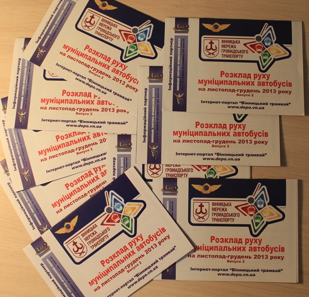 За ініціативи адміністрації сайту ВІННИЦЬКИЙ ТРАМВАЙ та за підтримки керівництва підприємства КП "ВТТУ" у світ вийшов другий друкований випуск "Розкладу руху муніципальних автобусів". Спонсором друку виступила Вінницька торгово-промислова палата. Розклад буде видаватися безкоштовно до усіх місячних проїздних квитків, які дають право проїзду у міських автобусах. Також, якщо у Вас є потреба у такому розкладі, запитуйте його у касах КП "ВТТУ" окремо.