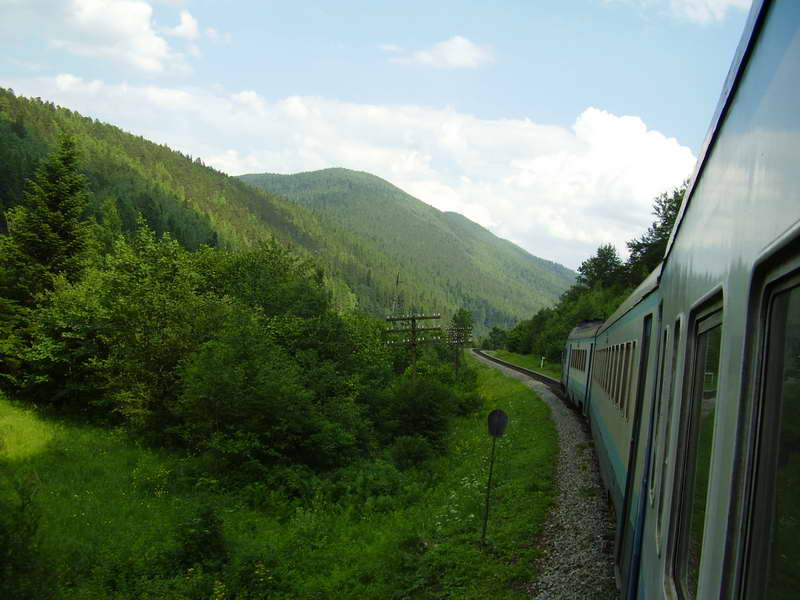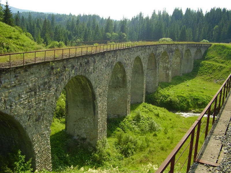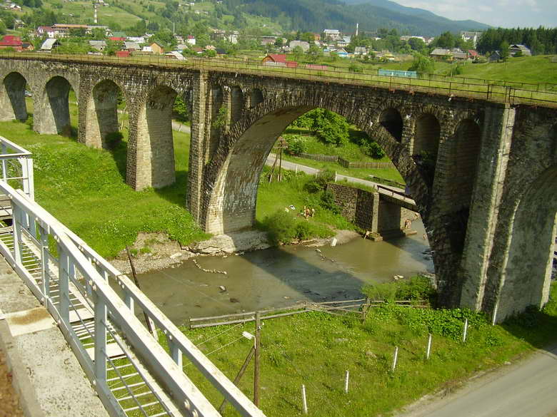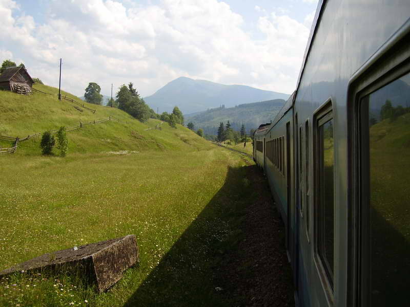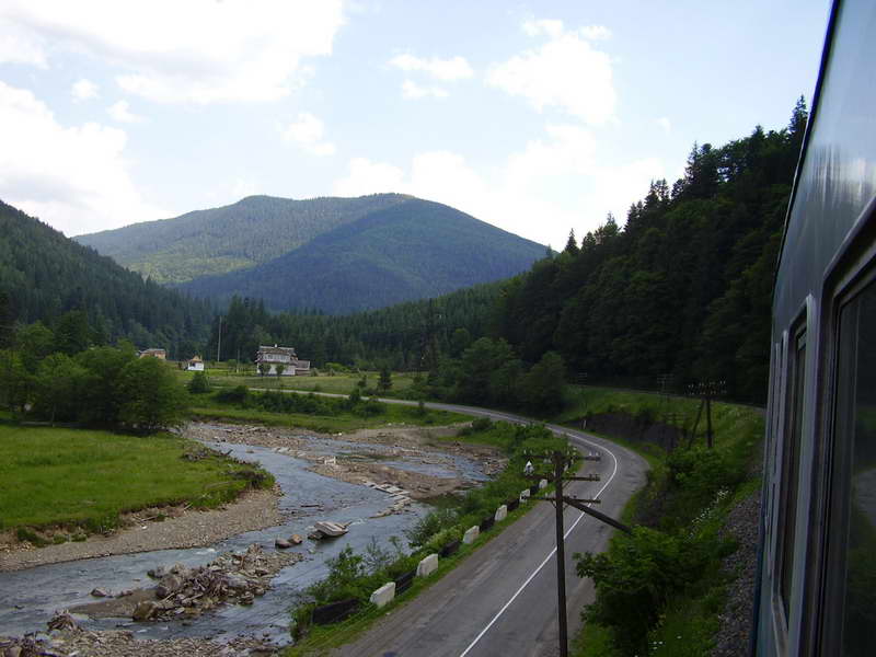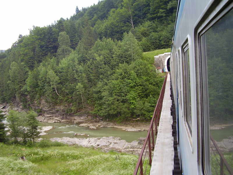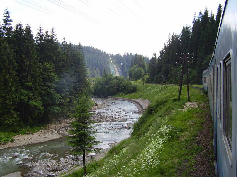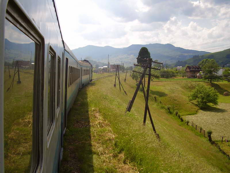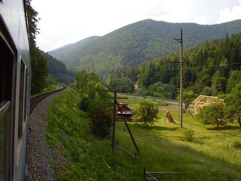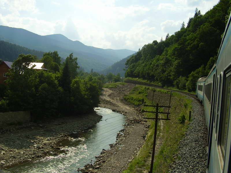 На протяжении большей части пути железная дорога идет вдоль гор вместе с автомобильной трассой, иногда пересекаясь друг с другом мостами. Река Прут тоже старается ввязаться в это сплетение.