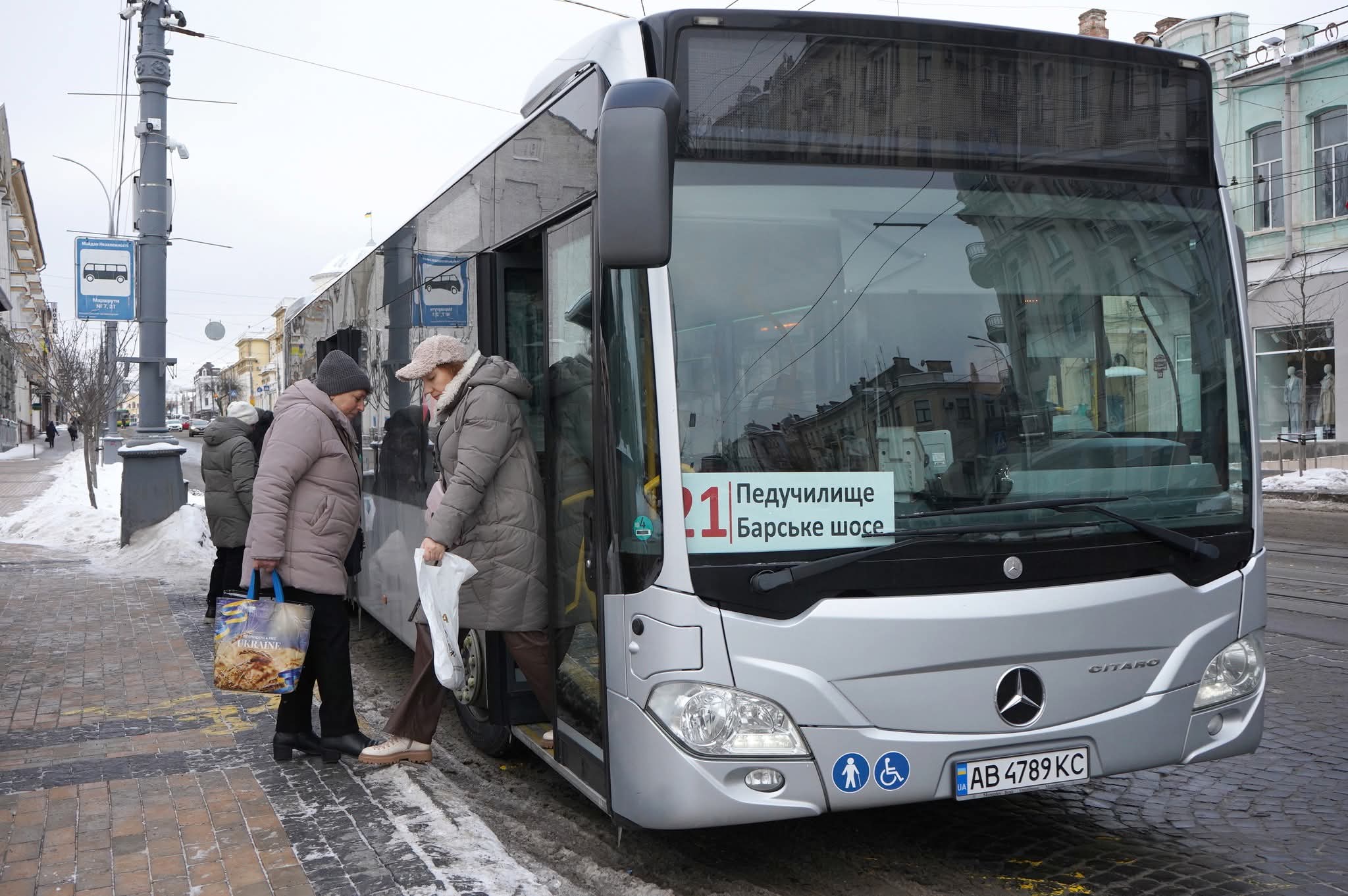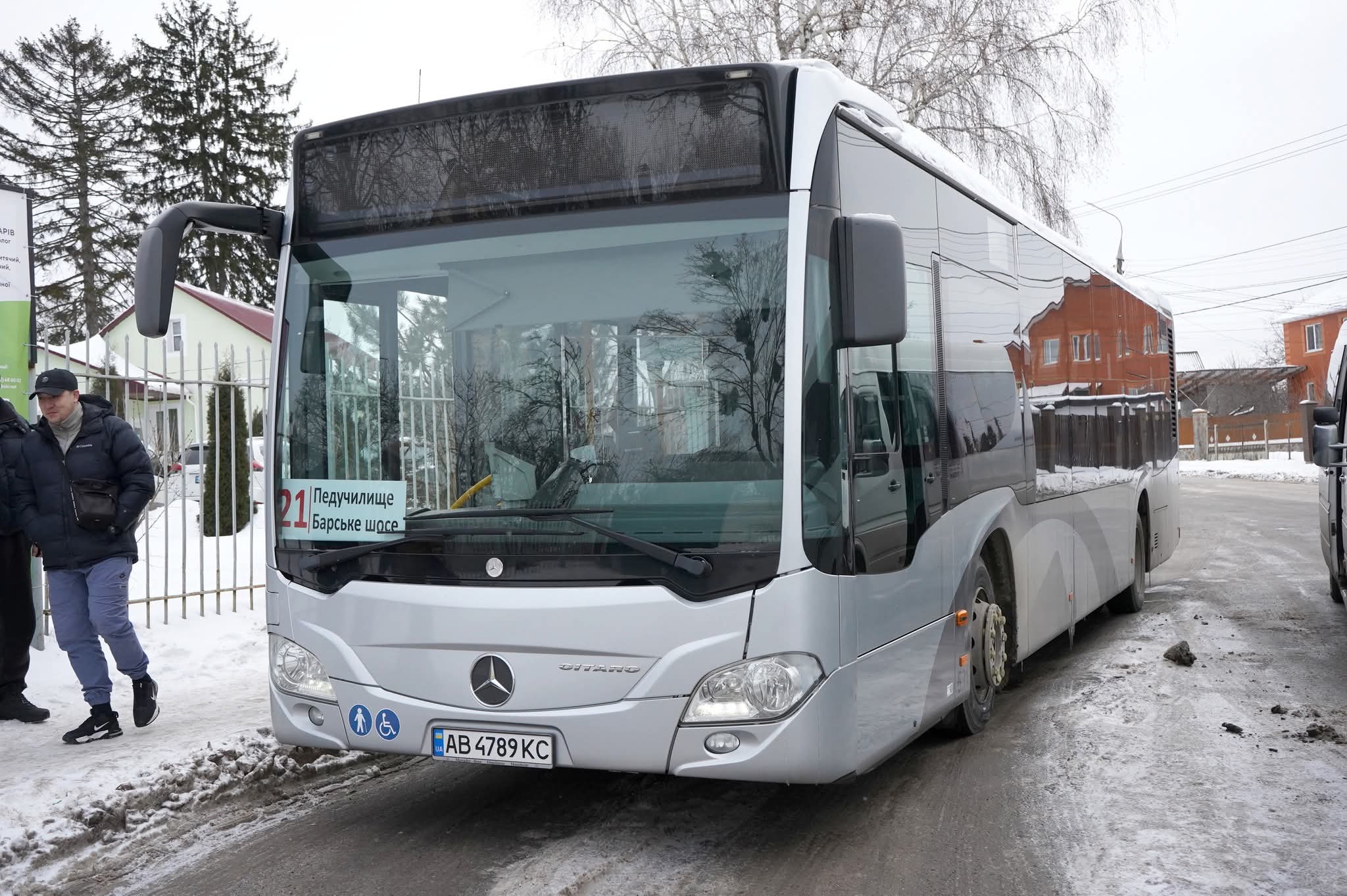 Маршрут №21 «Педколедж – Барське шосе» підсилили двома Mercedes-Benz Citaro, які Вінниця отримала від міста-побратима Карлсруе у грудні 2025 року.
