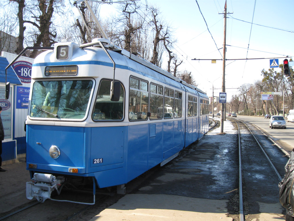 Перший день експлуатації вагону Be 4/6 Mirage у Вінниці. На фото вагон №261 на маршруті №5. Дата: 3 березня 2009 року. Автор фото Андрій Мороков