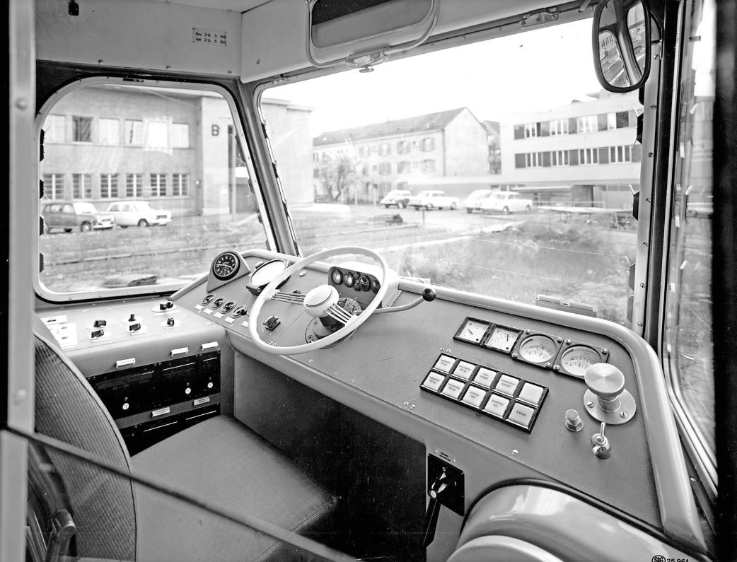Кабіна та панель керування вагону Be 4/6 №1601 (КП «ВТК» №255), березень 1966 року. Фото з архіву SIG, Neuhausen