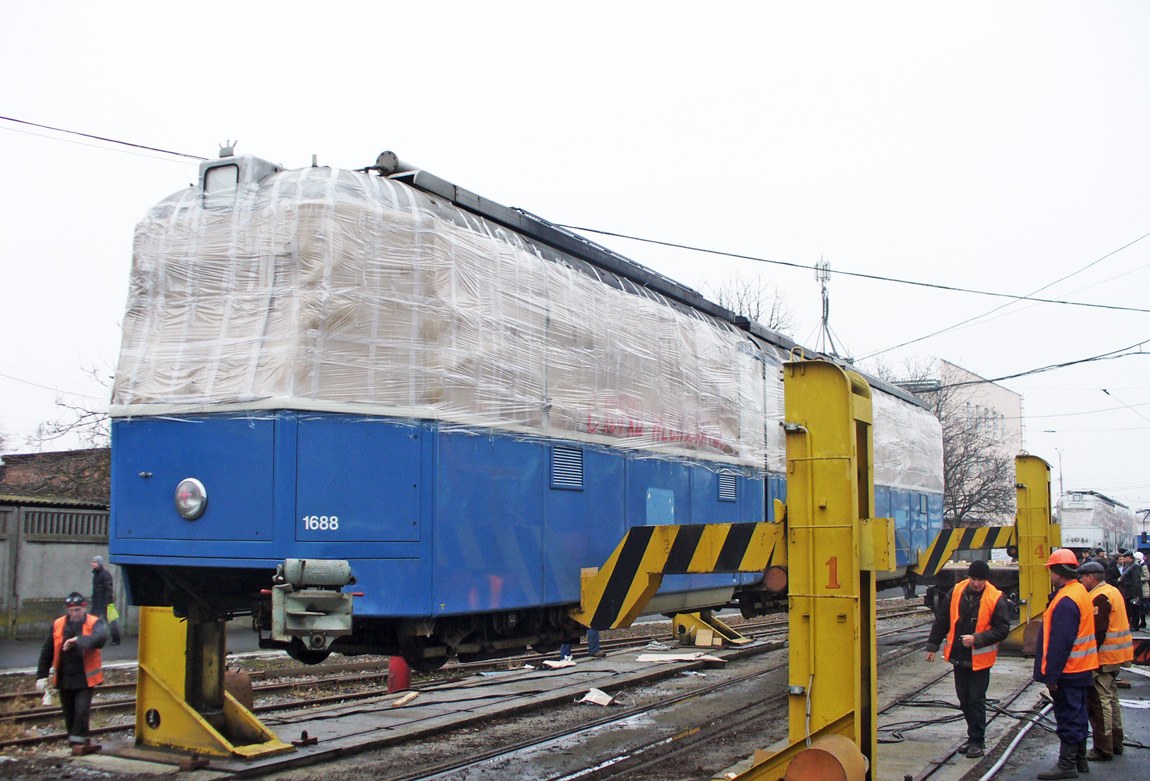 Розвантаження трамвая Be 4/6 Mirage №1688 (КП «ВТК» №344) у Вінниці. грудень 2011 року. Автор фото Павло Задніпрянний