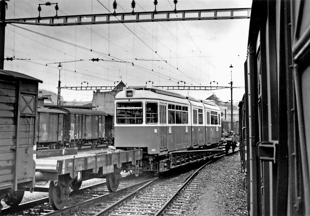 Транспортування вагону Be 4/6 №1653 (КП «ВТК» №308) залізницею, квітень 1967 року. Фото з колекції Patrick Meier