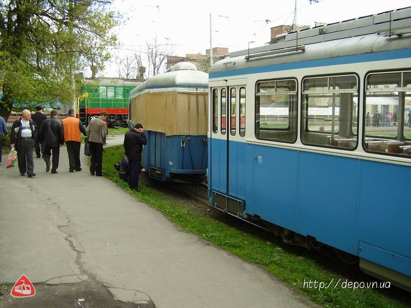 К вагону подцепляют одного из Карпфенов (из первой партии 2007 года) и оттаскивают в депо.